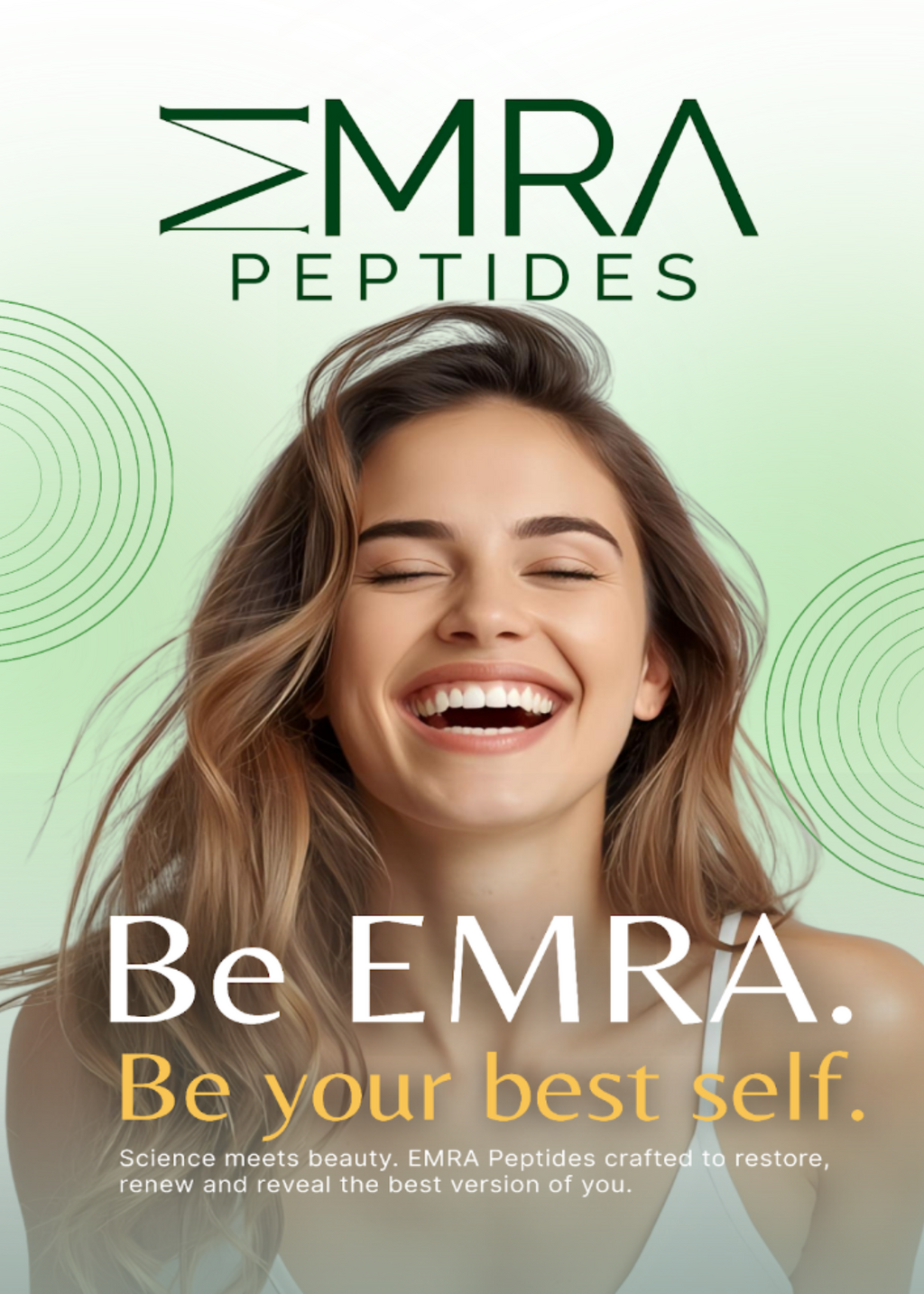 From advanced formulations like Tirzepatide, NAD+, Retatutide, GHK-Cu, Glutathione and Lemon Bottle to powerful rejuvenating products, EMRA is committed to helping you achieve your wellness goals safely and effectively. Each product is thoughtfully developed to enhance your vitality, boost confidence, and promote long-term well-being — empowering you to look, feel, and live your best every day.
